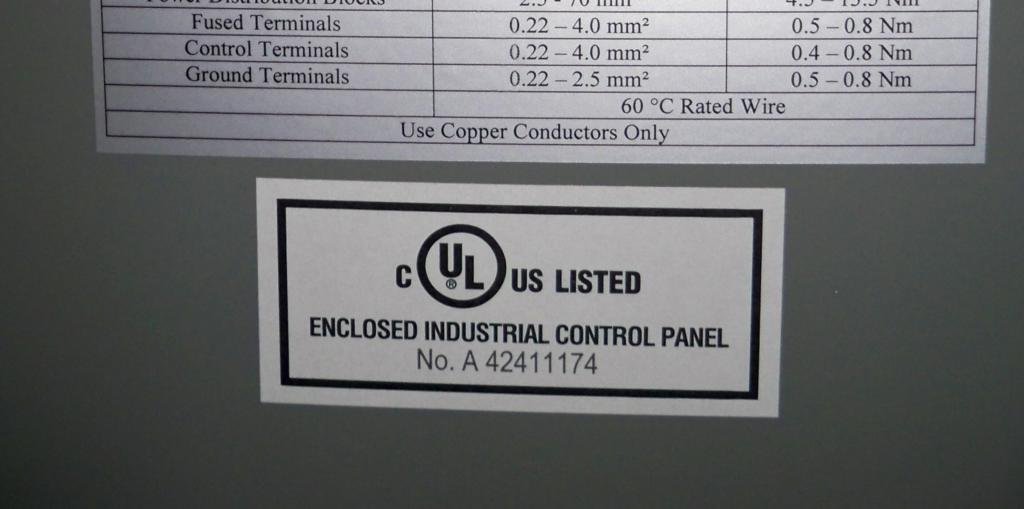 - Governing regulations and certifications: These include local and national electrical codes, site-specific standards and rules, and any requirement for UL certification. Governing codes determine how wiring, terminations and components are rated; how they can be routed; and how they are to coordinate with other onsite components (e.g., over-current protection coordination and required short circuit current rating (SCCR)). Site-specific rules may include, among other things, preferred vendors for panel components; wiring color schemes; methods for implementing safety measures (e.g. lock out/tag out, or areas designated as “authorized personnel only”, which can impact the design of panel access protection); and harmonic reduction requirements (e.g., concerns that a variable speed drive cabinet’s operation may impact the operation of upstream components on the same supply). Finally, some panel fabrications stipulate UL508A compliance, verifying that the entire panel assembly has been built and tested to rigorous UL standards. (Fig. 3).